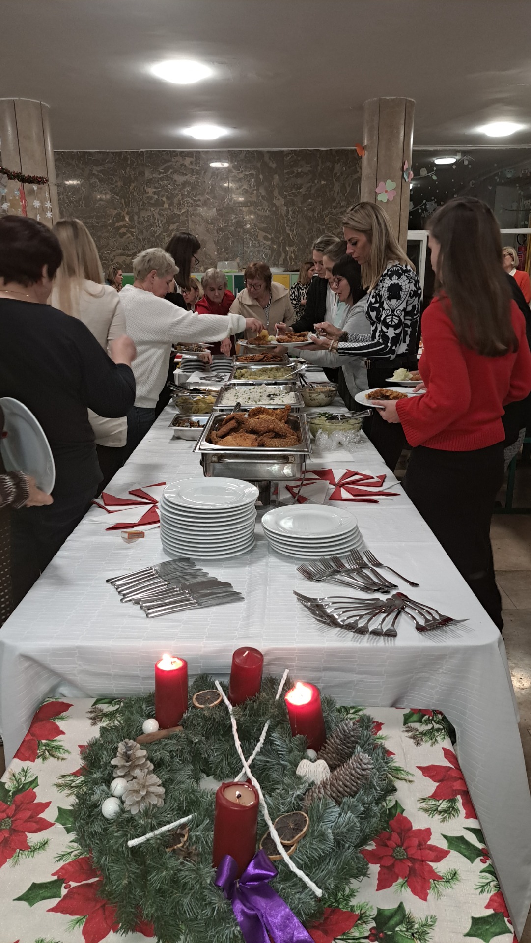 Iskolánkban idén is megrendezésre került a nevelőtestületi karácsonyi vacsora, amelyre minden alkalmazott meghívást kapott, és örömteli módon a többség el is fogadta azt. Az est ünnepi hangulatát a 3.a osztály adventi szolgálata alapozta meg, akik megható énekekkel és versekkel készültek.
