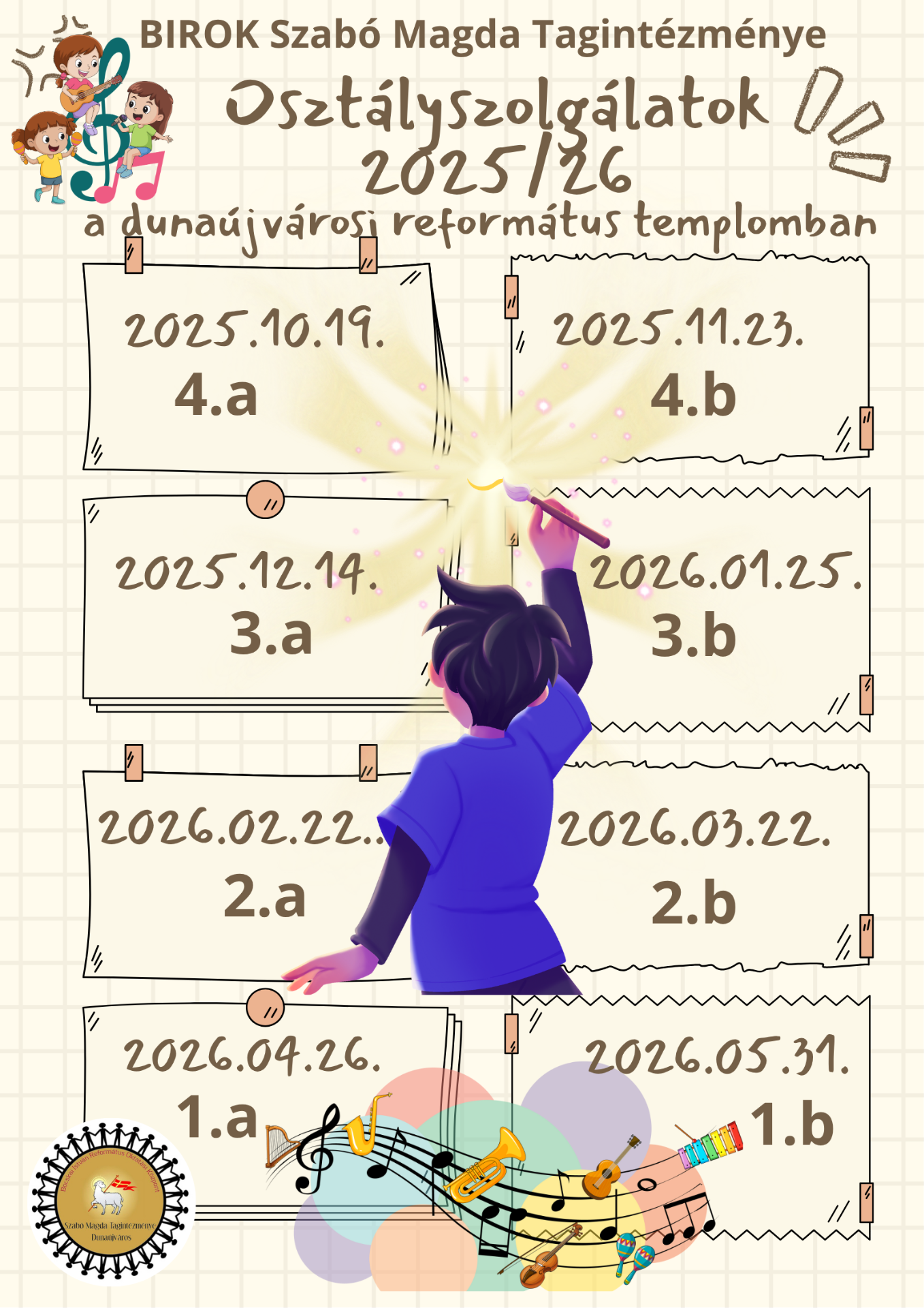 Osztályszolgálatok időpontjai a 2025-26-os tanévben